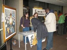 会场上也由“法轮功之友”提供了部份“真善忍国际美展”的艺术创作,其中包括描绘迫害真象的“吊刑”、“对妇女的迫害”等,及法轮功学员传播真象、呼唤正义的“莲心”等画作,并由学员解说画作的由来及背景故事。一些路经会场的学生也停下脚步驻足观赏画作,与会来宾多签下了连署请愿书,并进一步索取大法及画展的资料。