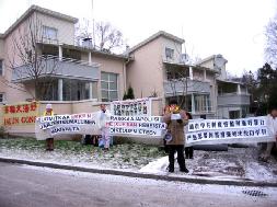 ![]() 芬兰学员中使馆前抗议 |