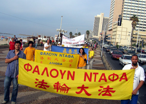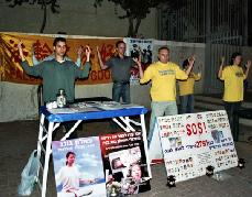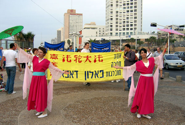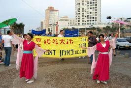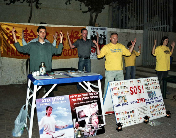 为了配合法会,以色列法轮功学员在12月2-3日在特拉维夫市和巴特阳市举办了真善忍艺术展和向世人展现法轮大法美好的游行。晚上部份学员继续到中国大使馆前和平炼功。