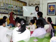 秉均:我好高兴可以来这里上课,可是时间太短了,我想要多上几天。我喜欢上剪纸、摺纸莲花、画画课,真希望下次可以再来上课。
