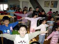 映彤:一开始我有一点听不懂,但后来认识了很多朋友。我们去公园炼功时,看到落叶很多,我们就很“善”的开始扫地。虽然后来炼功时很累,可是只要告诉自己忍耐一下就好了,我只想到要努力做到最好。在这里我很快乐,也改善了自己的坏脾气,如果可以,希望能一直在这里上课。
