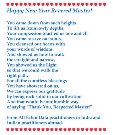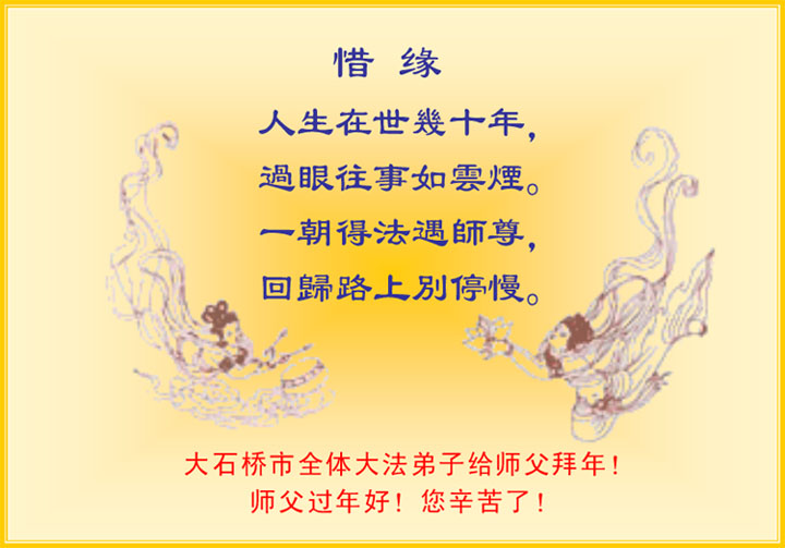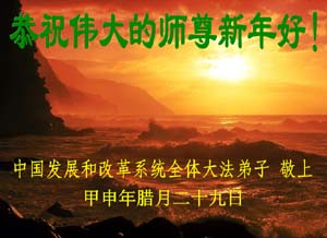 中国大陆的大法弟子,全世界大法弟子,新年好!乙酉年开始了,在这一年中,正法洪势会给人类带来变化。为此,大家要更加做好大法弟子要做的三件事,放下执著,不要用人心看待大法弟子必须认清的迫害与迫害我们的邪*党-的真面目。