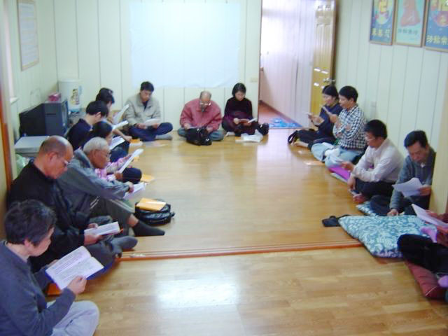 2005年2月9日 (农历大年初一),数十名宜兰县法轮功学员齐聚一堂,一起学习《洪吟》、《洪吟(二)》及新经文,并交流修炼心得。