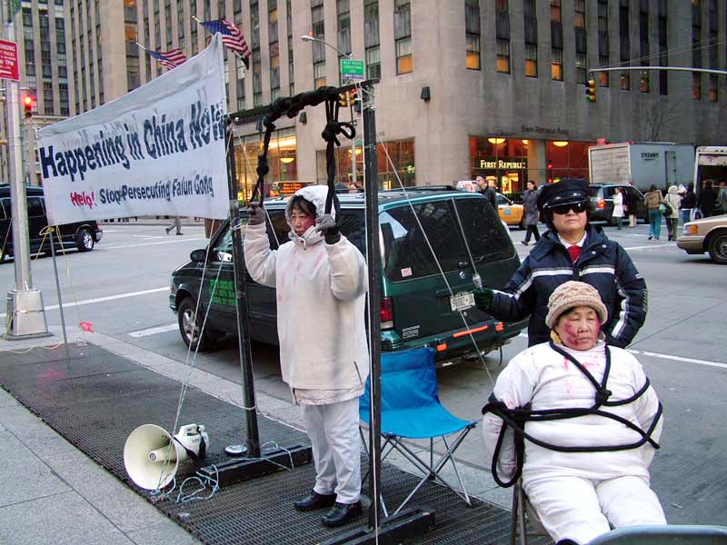 不同国籍的法轮功学员曼哈顿街头冒风雪讲真象(图)