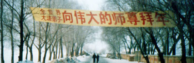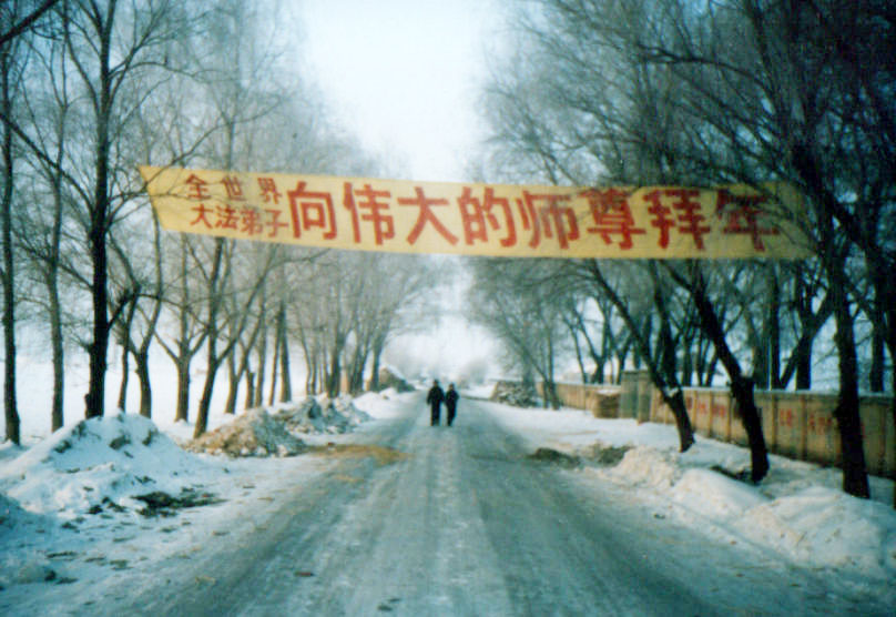 东北某市大法弟子挂横幅庆祝世界法轮大法日