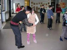 在休息过后,学员们用投影片告诉孩子们失去父亲的小女孩——法度的故事。法度的父亲因为修炼法轮功而在中国被迫害致死。优美的图片有助于孩子们清楚了解故事,他们也听的非常认真。老师则向孩子们提一些问题,以确定他们懂得了故事。这样的学习过程,使老师及孩子们对法轮功以及迫害的严重程度,有一个更好的了解。老师在听到中共对法轮功学员的种种暴行后,非常愤怒。