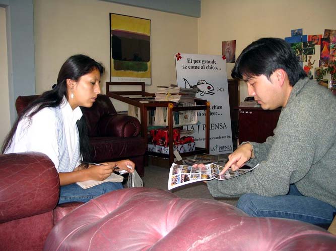 2月9日上午,我们在街上邂逅三个采访政府部门的电视台主持人,便主动向他们一一介绍了法轮功和法轮功学员在中国无理遭受迫害的真象。他们非常同情的听着,有的表示星期六一定到炼功点采访。下午,我们走访了全国发行的“日报”(El Diario)报社和La Prensa报社,记者颇有兴趣的听完法轮功真象并非常乐意的接受法轮功真象资料。La Prensa 的记者小姐听了法轮大法的真象非常感动,对大陆大法弟子至今还在遭受迫害深表同情。直接采访了我们,并告诉我们这个星期五就刊登有关文章。