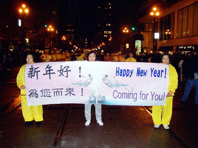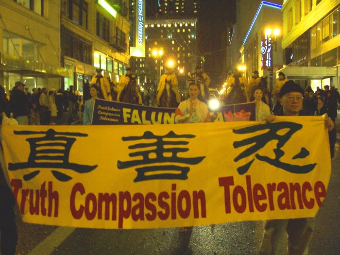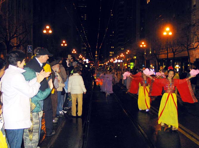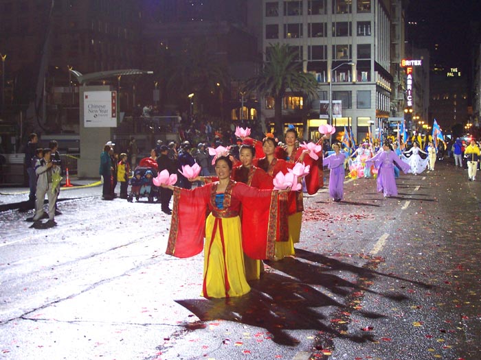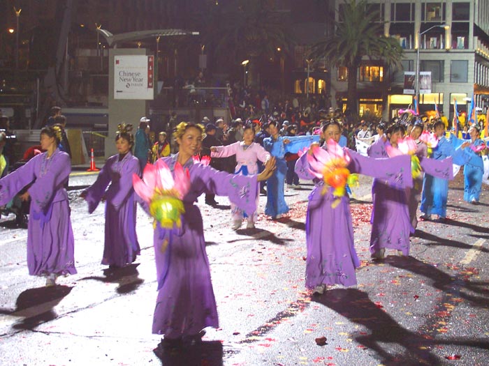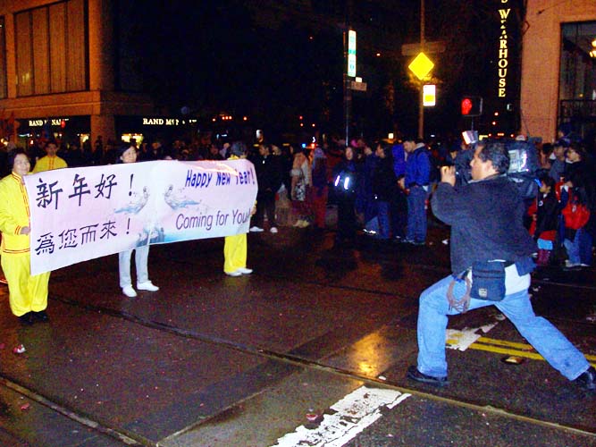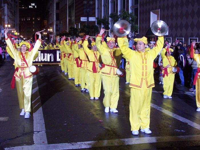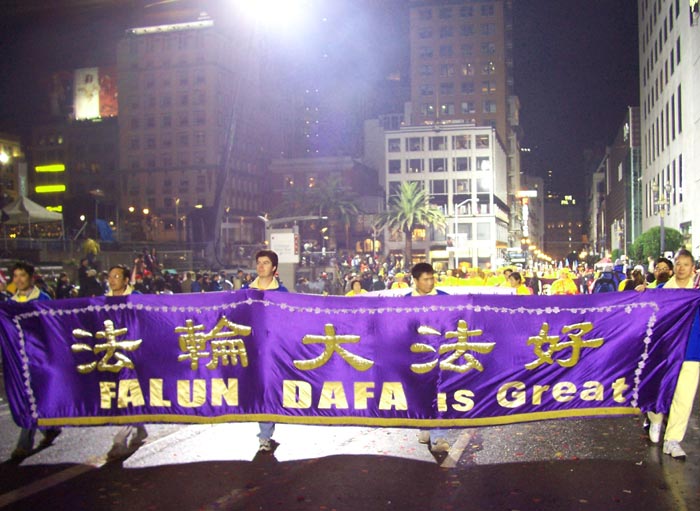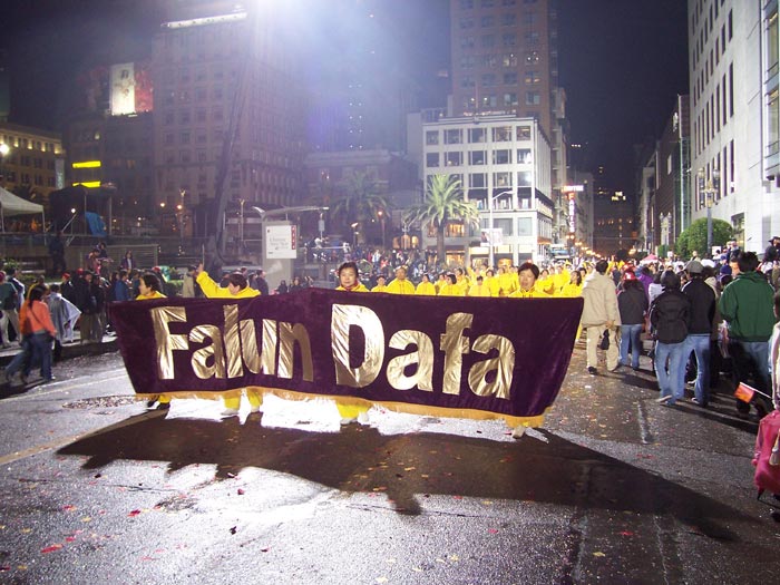 旧金山华人庆新年游行是北加州最大的游行之一。每年都有数十万人观看、并有多家电视台实况转播。由于去年法轮功在游行中的出色表现,今年在2号频道(FOX电视台)的大游行公告片中,就有法轮功去年游行的场面片段。