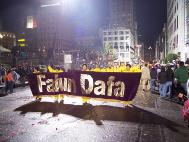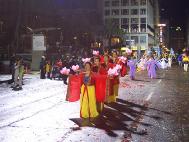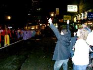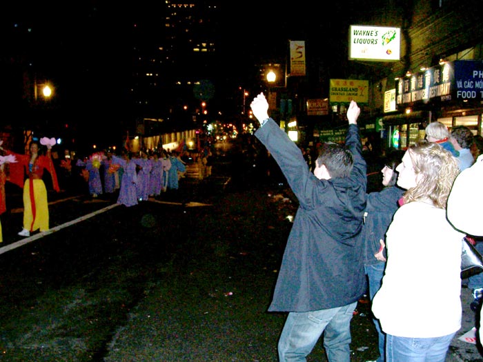 ![]() 热情的观众 | ![]() 观众向法轮功队伍欢呼 |