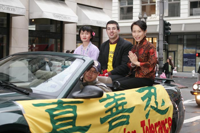 旧金山市议员克里斯-戴利(Chris Daly)听到法轮功的申请遭到拒绝后,主动邀请法轮功的队伍跟在他的车后面,并邀请法轮功学员打出“克里斯-戴利支持法轮功”的横幅。在了解到这样做不符合游行规则时,他就准备了两个横幅贴在他的车上,一幅是“法轮大法好”,另一幅是“真、善、忍”,并邀请两名法轮功学员坐在他的车上一起参加游行。克里斯-戴利的座车受到了沿途观众的欢呼。有的观众说:真善忍真好!