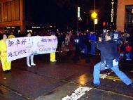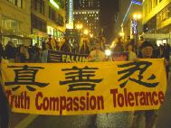 * 讲清真象 冲破阻拦 法轮功获准加入游行