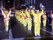 法轮功学员张虹说,中国人对庆祝新年的活动非常重视,我们作为社区的一分子,非常高兴参加庆祝新年的游行。这次游行,我们为民众带来了祥和的法轮功功法示范、气势磅礴的腰鼓队、翩翩起舞的莲花舞、彩灯舞、孔雀舞,还有唐装和旗阵。两边的观众非常欢迎我们的队伍,特别喜欢我们的这些中国传统舞蹈,许多警察都不断的给我们鼓掌。