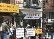 2月16日中午,法轮功学员在旧金山中华总商会门前举行新闻发布会,就法轮功申请今年旧金山中国城新年游行被拒一事,要求一个合理的解释。
