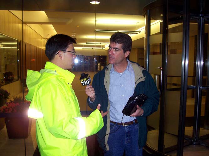 游行开始前,包括NBC电视台、ABC7电视台、KCBS电台等大批媒体对到处寻找法轮功的队伍要求采访。