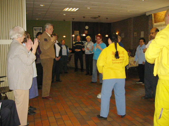 【明慧网2005年2月22日】2005年2月7日,应荷兰阿姆斯特丹某教堂神父的正式邀请,荷兰法轮功学员到教堂向教徒们介绍法轮大法并教授五套功法。