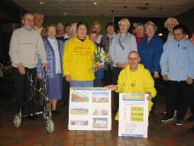 最后全体人员向法轮功学员献花并合影留念。这幅照片现已保存在该教堂。