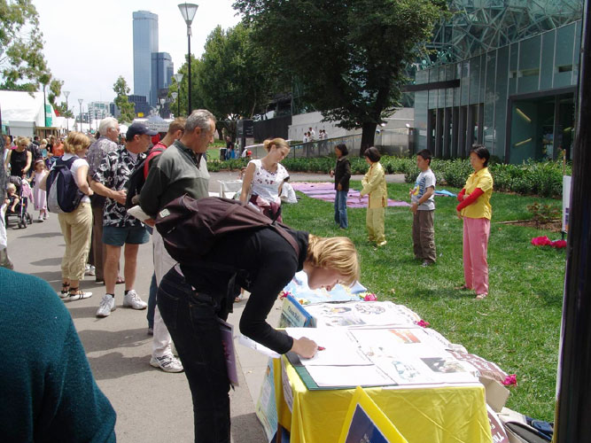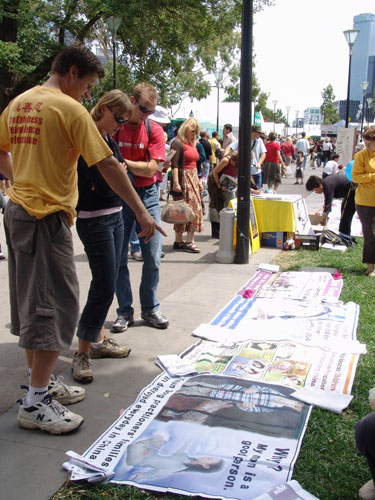 很多人看了揭露迫害的真象图片后非常气愤,都说他们完全相信中国发生的这一切,中共这样一个人权恶劣的政府根本没有资格主办2008年奥运会。一个小伙子在看完真象后说:“共产党怎么可以这样对待生命,真是太邪恶了!”了解了真象的人们纷纷在征签本上签名,呼吁早日结束这场惨无人道的迫害。