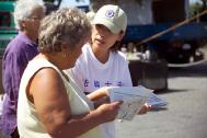 一位德国的游客接过真象资料遗憾的说,“对不起,我不会读英文。”一位同修立即指着资料上的网址对他说:“您可以浏览我们的网站,免费下载你所需要的所有德文信息。”他高兴的收好资料,连连点头说“OK、OK.(好,好。)”