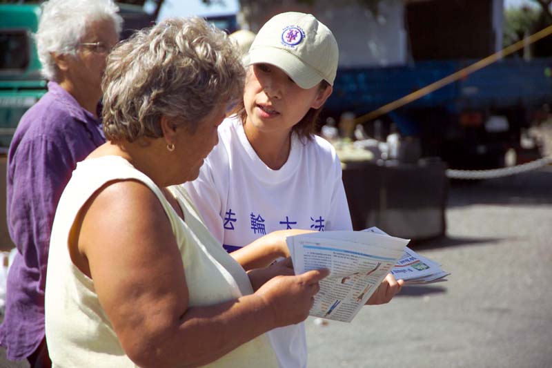 参加此次活动的一位学员是刚从中国拘留所被营救出来的。她用自己的亲身经历讲诉了中共对法轮功的迫害和国际社会正义的声援对行恶者的震慑。一位女士边听边流泪,临别时和这位学员紧紧拥抱说“太残忍了,谢谢你告诉我真象!”