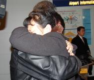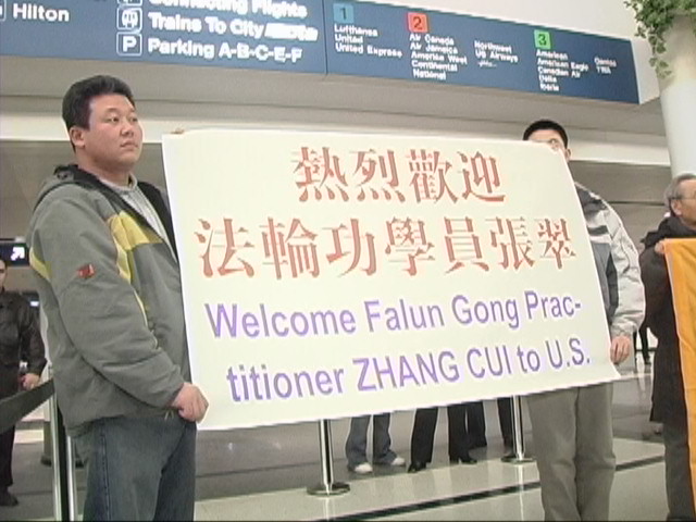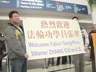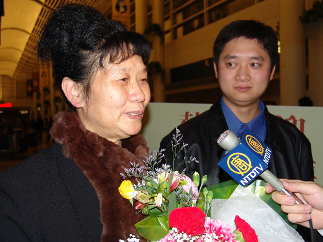 ![]() 法轮功学员也到场欢迎 | ![]() 母子相见,分外开心 | ![]() 母子共同接受媒体采访 |