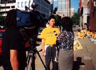 ![]() 在过去的五年里,徐先生经常这样通过接受媒体采访的方式向人们讲述自己的故事,呼吁停止迫害法轮功。图为2001年接受美国CBS电视台新闻采访 |