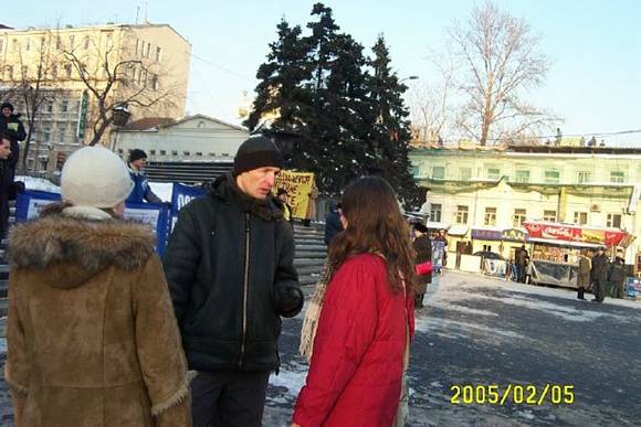 一位中年男士拿到真象资料后,又主动向学员详细了解在中国发生的对法轮功学员的迫害情况,知道真象后问学员“我能帮你们做什么?”,学员告诉他“你可以签名呼吁立即停止迫害”他欣然接受。当他看到有的过路人不愿接下学员递过的真象资料时,他主动的向那位过路人士说:我建议您好好看一看这些资料。请您想想,不制止这种迫害,当这种迫害轮到我们头上时就晚了!他的话深深触动了那些麻木的人。学员们深切感到莫斯科的世人在觉醒。