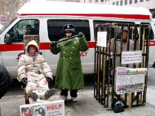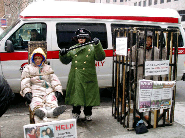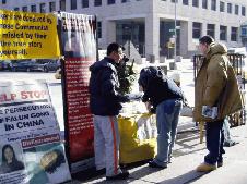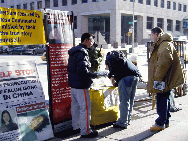 不同国籍的法轮功学员曼哈顿街头冒风雪讲真象(图)