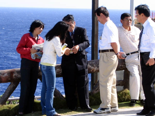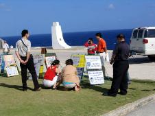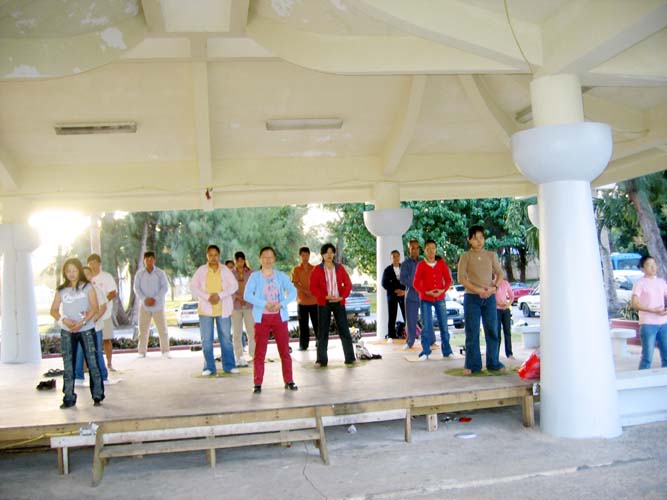 【明慧网2005年2月7日】近年来,来塞班岛旅游的中国游客不断增多,塞班岛大法弟子与全世界大法弟子一样努力作好三件事。图为同修们利用星期天在旅游景点炼功洪法向游客讲真象。