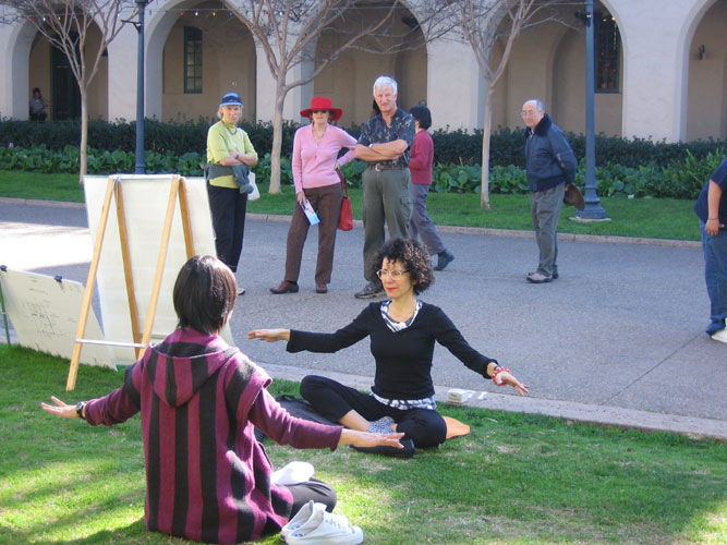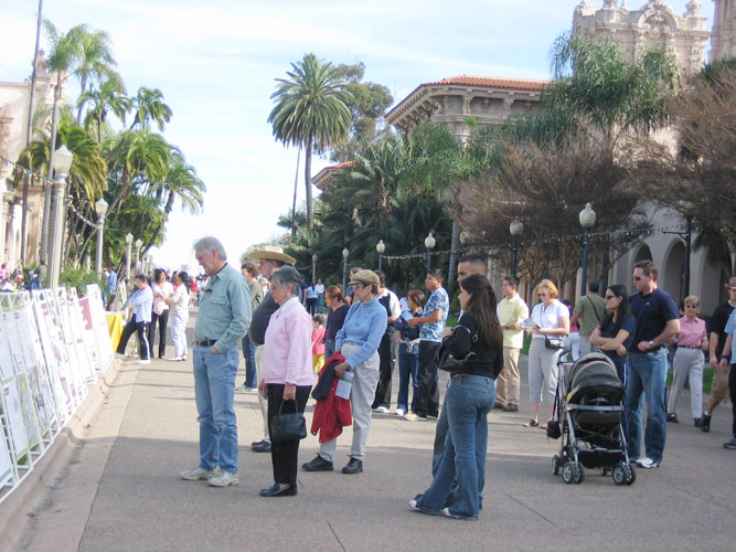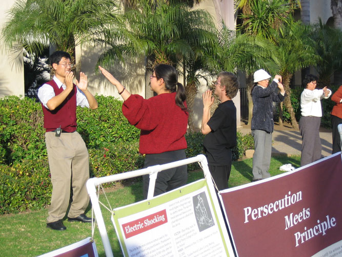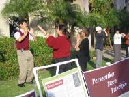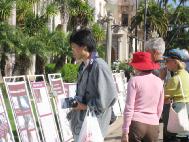 得知这一消息后,圣地亚哥学员决定充分利用这一有利条件,不失时机的向世人讲清真象。自2004年12月底以来的每一个周末,部分圣地亚哥学员连续在公园举办了一系列的反酷刑图片展,取得了极佳效果。