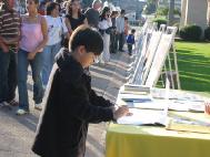 ![]() 迫害真象引人深思 | ![]() 了解真象后签名反对迫害 | ![]() 观众在仔细的观看 |