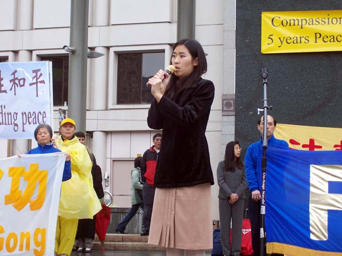 英国前资深外交官瑟罗勋爵也前来支持,他在集会上说,我们应该让更多的人了解到发生在中国的迫害,因为揭露邪恶是结束5年半的迫害最有力量的武器。在过去的50年中,中共犯下了许多罪行。现今,许多法轮功学员被折磨致死,甚至是孩子他们也不放过。而这些迫害却被中共用谎言宣传企图掩盖,不光欺骗中国的人民,还通过其驻海外的使领馆欺骗海外的华人。他说,“不允许再这样继续下去了。自由世界的媒体有责任让中国人民了解真象。我们呼吁所有的媒体为法轮功学员说话。”