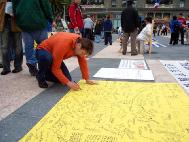 ![]() 呼吁营救弟弟的黄万青博士 | ![]() 民众在呼吁停止迫害的黄布上签名 | ![]() 观看真善忍画展 |