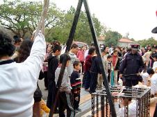 公园里处处都是父母陪孩子玩乐的温馨画面,当民众观赏法轮功学员的文艺表演,分享了法轮功的美好后;来到公园外的酷刑展场,看到由真人演示的各种酷刑,都露出难以置信的神情,表示公园内外宛如天堂与地狱。民众听了法轮功学员的解说后,都感觉共产党很残忍而十分同情中国法轮功学员的遭遇,纷纷签名支持反迫害。