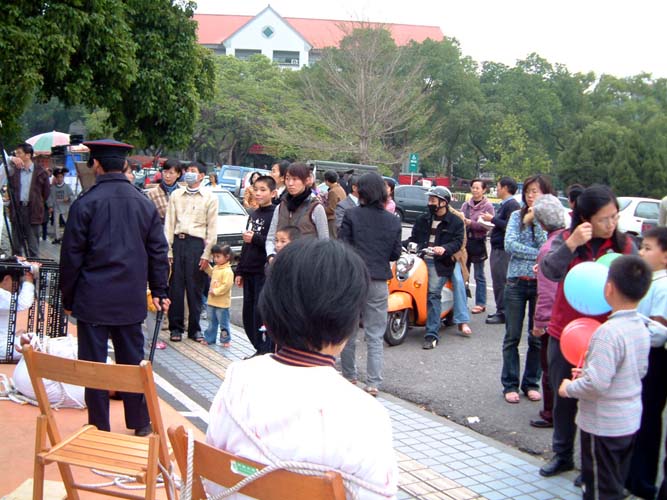 南投连日阴雨的天气,直到27日上午九点多仍未放晴,神奇的是,在法轮功学员组成的腰鼓队开始表演后,绵绵细雨竟然停了,天空慢慢变亮、阳光乍现,一扫连日阴霾而显得相当暖和,儿童公园出现难得的人潮。