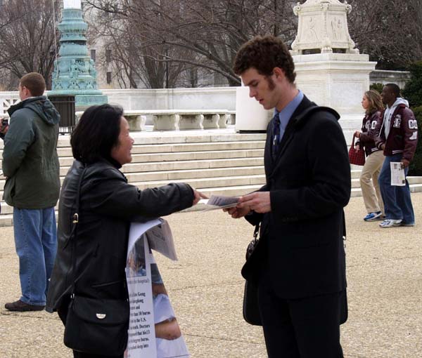 【明慧网2005年3月12日】2005年3月11日中午,部分华盛顿DC法轮功学员来到美国最高法院前,向人们揭露江氏集团在中国用