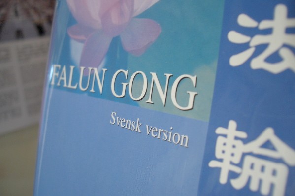 ![]() 法轮功学员的展位 | ![]() 瑞典文《法轮功》 |