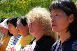 ![]() 新闻发布会上法轮功学员 |