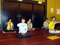 ![]() 电视台记者正在拍摄 | ![]() 学员们集体炼功 |