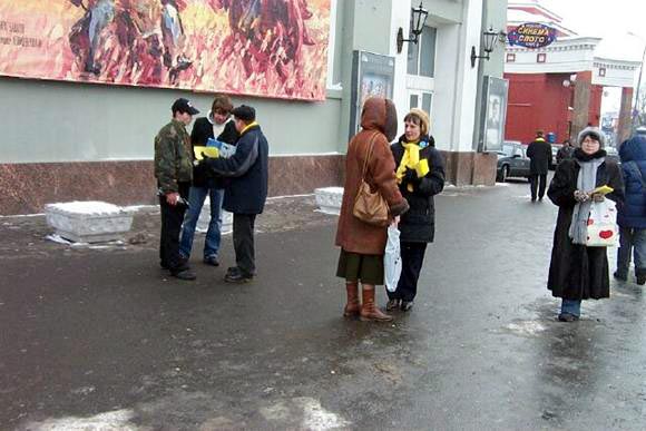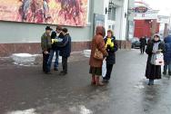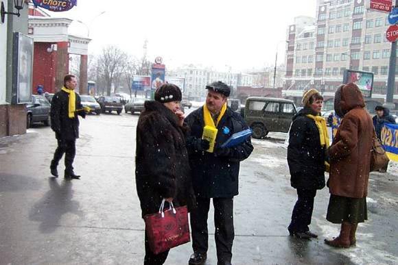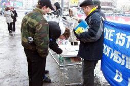 【明慧网2005年3月15日】2005年3月12日星期六,莫斯科法轮大法学员冒着风雪交加的严寒,再次来到市中心阿尔巴特广场向众多的世人讲真象,要求立即停止在中国对法轮功学员的残酷迫害。