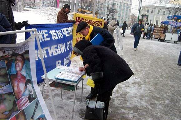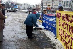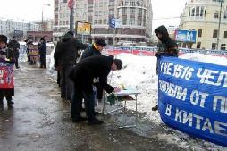 据明慧网消息,近三个月来新确认被迫害致死的法轮功学员多达300多名,中共江氏集团还在继续行恶。为了让莫斯科人更好的了解法轮功在中国无辜遭迫害的真象,为了让全世界正义的人们都来谴责和帮助制止这场灭绝性的迫害,莫斯科法轮功学员们制作了一系列的真象展板,使路过这里的人看到展板就知道在中国正在发生的迫害真象。