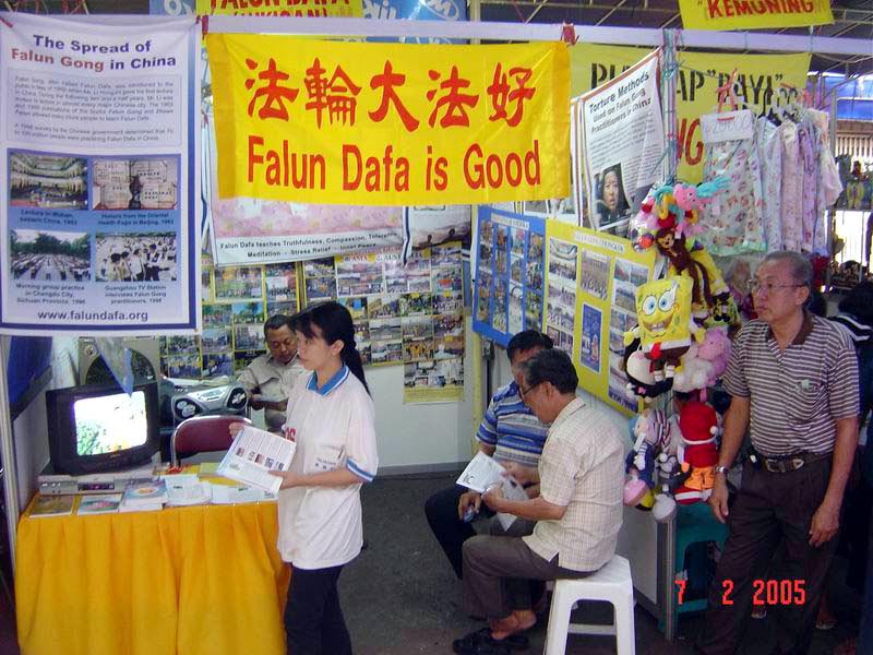 法轮功学员的展位全天播放反映法轮功在世界、印尼的洪传与发展的录像片,印尼各城市因修炼法轮功而得到健康身体的见证人的话,法轮功书籍,法轮功学员制作的书签,吸引很多人来参观、了解。很多人都知道法轮功好,能够祛病健身,令人道德升华,所以他们一发现法轮功展位也参加展销,就纷纷来索取真象资料,咨询炼功点,并表示愿意参加炼功,有的迫不及待的当场学功。也有人关心大陆被迫害的法轮功学员,了解法轮功在中国的最新发展等等消息。