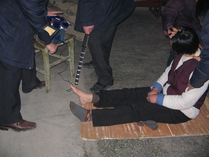 演示图5 (以上为模拟当初邪恶之徒迫害大法弟子的照片,有一些道具是后期合成的。)