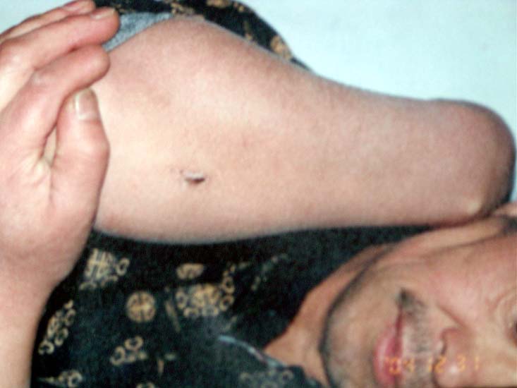 下午2点多,恶警所长尹忠良带人把我拉到西侧无人区,恶警尹忠良说你打警察骂人,我说修炼的人打不还手骂不还口。他上来就是几个耳光,把我这60岁的老人打倒在地,用脚猛踩我的头和脖子,还喊着“谁打你了”,边说边打。我真没有想到共产党的干部如此无赖、残忍。我强喘一口气,手指踩在我脸上的脚说:“你的脚现在干什么呢?大家都看到了。”他心虚了,把脚拿下来了。这时我的脸肿了,牙也活动了,嘴里流着血。