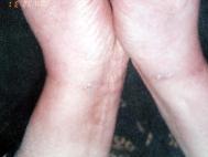 12月16日早饭后,恶警所长尹忠良看以上办法不灵,就派了四名恶警察把我带到里边的一个空房子里,房子外边用比大拇指还粗的铁栅栏封闭着,有一个小铁门,阴森恐怖。姓邱的恶警说:“你怎么不吃饭?”我说:我只能用这种方式抗议对大法弟子的不公平。他二话没说张嘴就骂,我说骂人可耻。恶警常成领着其余三人窜到笼子里,对我大打出手,我高喊:“我是好人。警察不许打人!法轮大法好!”监狱的人都能听到我的喊声。恶警强摁着我,把手铐子扣到我背后猛打。这样不停的打了10多分钟,手铐子勒到肉里去了,我的嘴在出血……我耳边想起师父的话:“大觉不畏苦 意志金刚铸 生死无执著 坦荡正法路”(《正念正行》)。它们终于停下来,打开我的手铐,叫犯人把我抬回号房。我心想,有师在有法在,我什么也不怕。