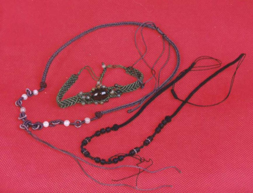 【明慧网2005年3月17日】信仰“真、善、忍”的大法学员1999年以来遭到史无前例的残酷,众多的大法学员被非法关押在拘留所、派出所、劳教所和监狱;在被非法关押期间,大法学员被奴役制作各种各样的用于出口的产品。以下这几张照片就是中国辽宁省马三家劳动教养院迫害大法弟子、强迫劳动的罪证。图片为装饰品,有手链、项链、工艺品花等等,还有很多工艺品没摄下来,均为出口用,为马三家教养院赚取大量资金。