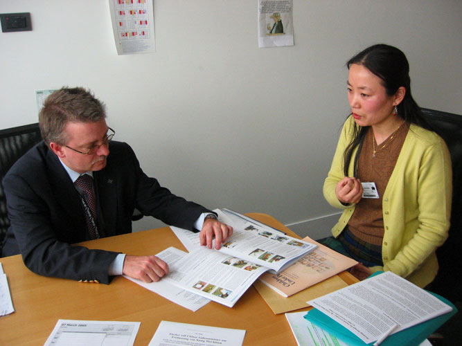 3月7日下午,在会晤德国议员葛拉(Gahler)先生时,她们不仅讲述了各自在中国受迫害的亲身遭遇,而且着重讲述了在中共江氏集团毫无人性的迫害法轮功中对母亲和孩子的虐杀。作为欧盟人权委员会的成员,葛拉先生从很早就关注法轮功群体所受到的人权伤害,坚决站在和平、正义的法轮功学员一边。这一次见到了两个活生生的例子,葛拉先生听到详情后表示“非常震惊”,并强烈谴责中共在人权领域的诸多罪行并指出国际社会不应只与其发展经济。葛拉先生也非常同情和支持人权受到践踏的中国民众,非常信任和尊重法轮功学员。