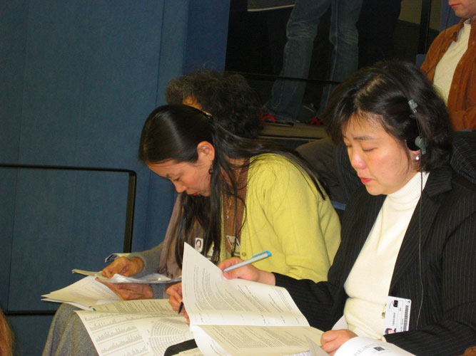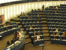 ![]() 欧洲议会全体会议会场 | ![]() 熊伟和陈颖在听有关人权的议题 |