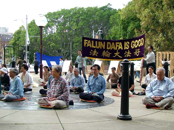 澳洲法轮功学员在高院前举行反酷刑展,大型集体炼功和新闻发布会支持诉江案。虽然今天二被告未到庭,章翠英女士的代表律师还需要在稍后的时间与法院登记处官员就被告应诉等法律程序问题進一步讨论并决定下一次开庭时间,但是法轮功学员在庭外的大型活动仍然了吸引了众多的法院工作人员,律师和路人的关注。很多工作人员和律师都接到了法轮功学员特意制作的关于法轮功被迫害和诉江案的真象资料,人们一边走一边阅读真象资料,并把真象资料带入办公室,互相谈论。