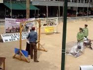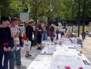 随着反酷刑展的進行,天空的阴霾渐渐散去,阳光开始普照大地。一颗颗善良的心在开启,征签表上的名字在不断加长……就在快结束的时候,接到了市政府有关部门的来电,说反酷刑展第二天可以继续進行。