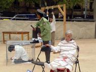 ![]() 一男子前去拥抱演示酷刑的学员,表达敬意。 | ![]() 酷刑演示 | ![]() 酷刑演示 |